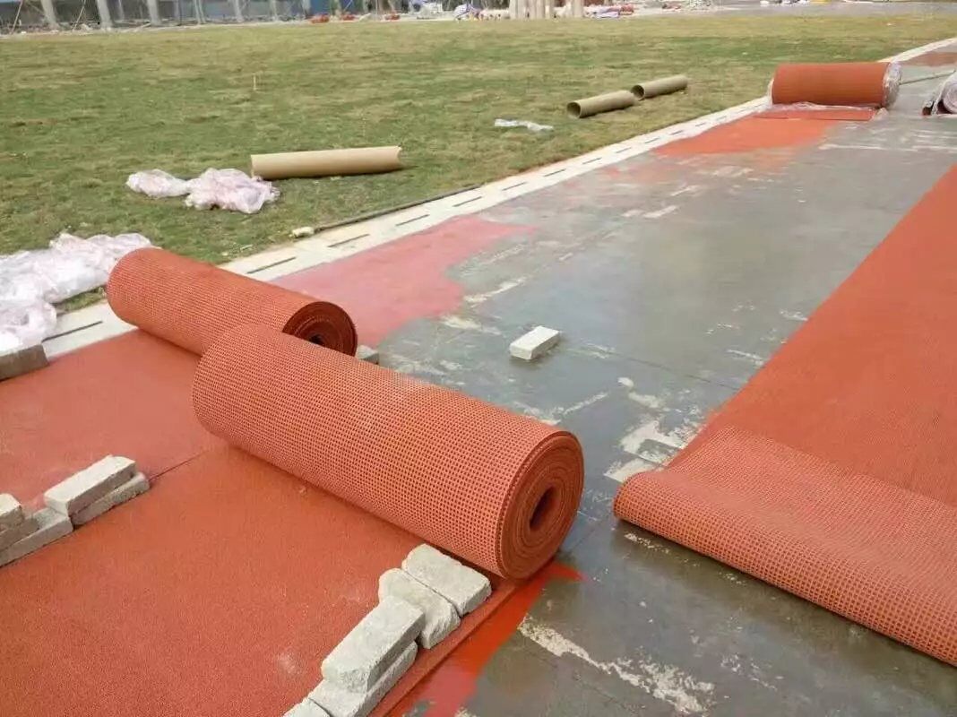 抗紫外線,有效避免運動傷害,具有強韌的彈性層及緩沖層,可抗釘鞋磨損,軟硬適中,耐磨性佳,價格較低,有一定的使用局限性,性能介于混合型、透氣型之間。在鋼筋混凝土基礎上鋪裝最佳。顏色有鐵紅、草綠色或根據用戶需求而定。